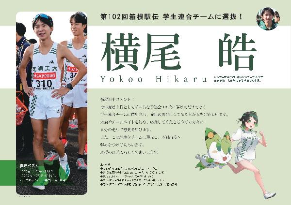 芝浦工業大学から関東学生連合チームに選出されている駅伝部の横尾皓さん(環境システム学科4年)が、